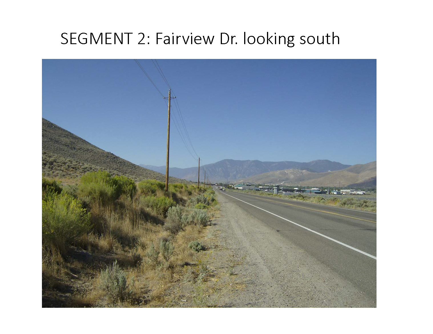Segment 2 is located in an existing pipeline ROW along Fairview Drive and South Edmonds Drive, and just south of East 5th Street (SR 513). Segment 2 is approximately 1.58 miles along Paiute’s existing Carson Lateral. The segment alignment will begin at Paiute’s existing Carson City Gate (CG) #5 located at the intersection of Fairview Drive and SR 513 and proceed southwest along Fairview Drive and South Edmonds Drive within existing public ROW. The proposed pipeline alignment crosses BLM-administered land (19%), State of Nevada land (39%), and private land (42%). This area was previously disturbed during the installation of Paiute’s two existing mainlines in 1964 and 1977.
